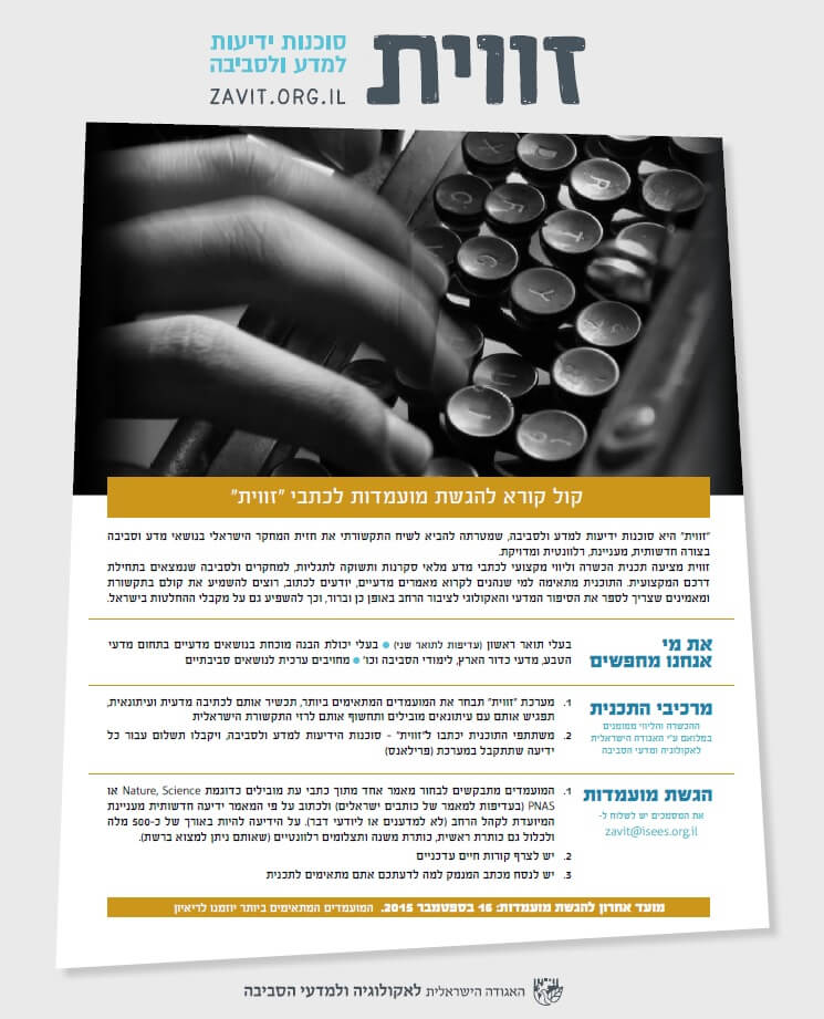 מערכת זווית מחפשת כתבים חדשים - עם הבנה במדע, אהבה לסביבה ותשוקה למלים